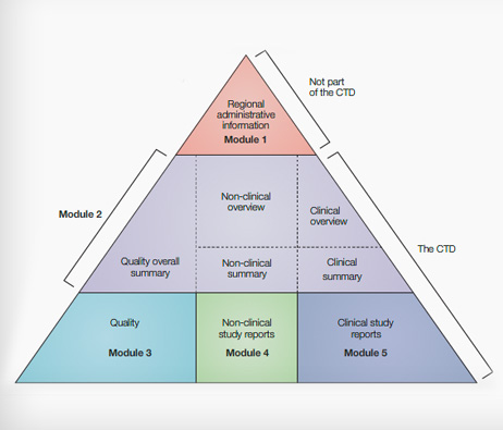 This backbone is broken down into five modules. Documents are placed appropriately into modules, which are graphically presented as the CTD Triangle.